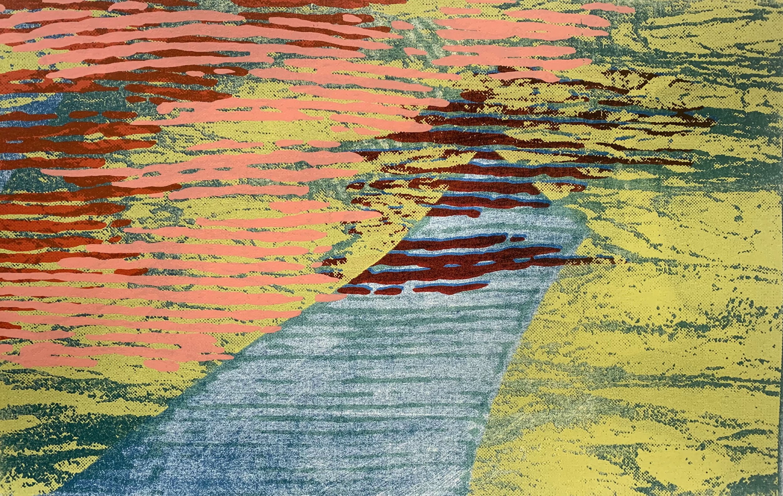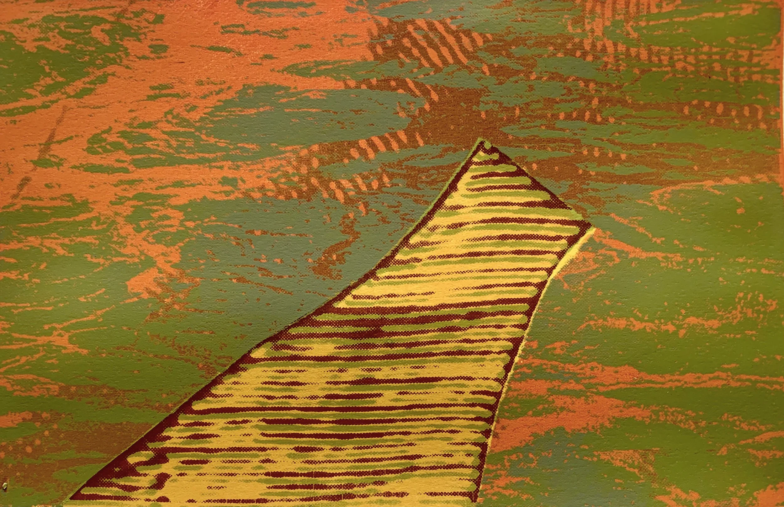 Stencil and photographic silkscreen prints. This ongoing series of abstract landscapes explores the visual legacy of colonial expansion through the lens of printed materials used during the European colonization of the Americas.