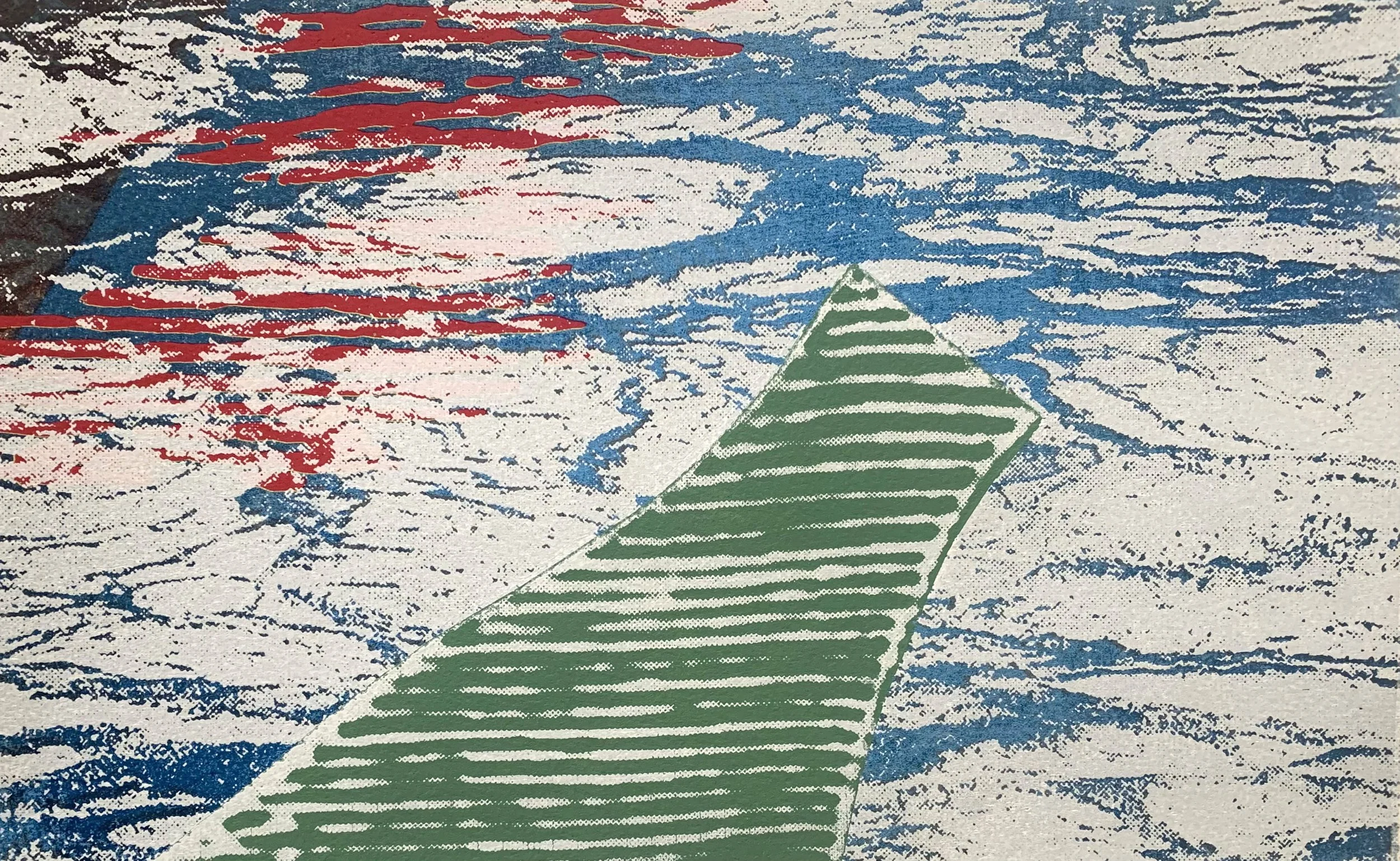 Photographic silkscreen & acrylic on canvas, each 16” X 200”. This series contrasts the ideals and myths of Colonial America with immigration policy today.